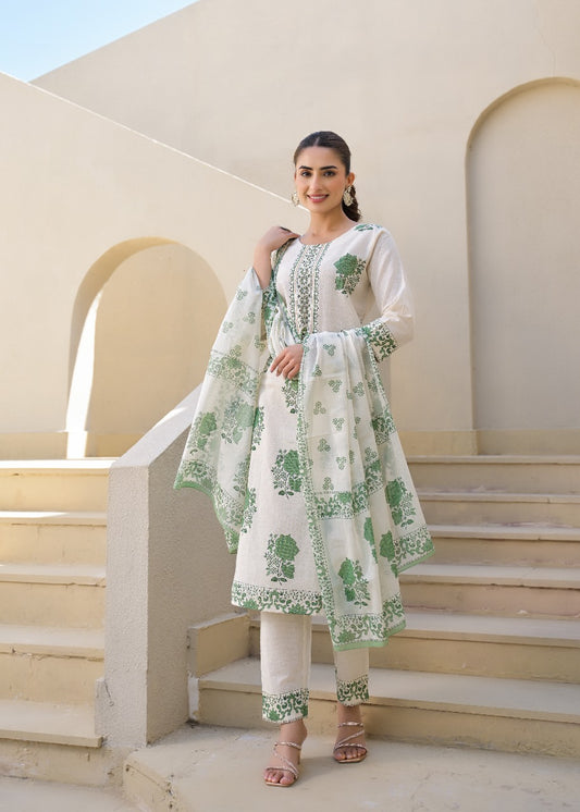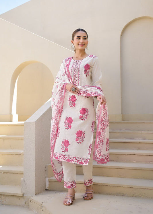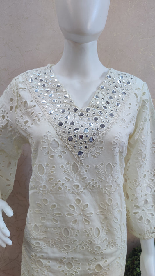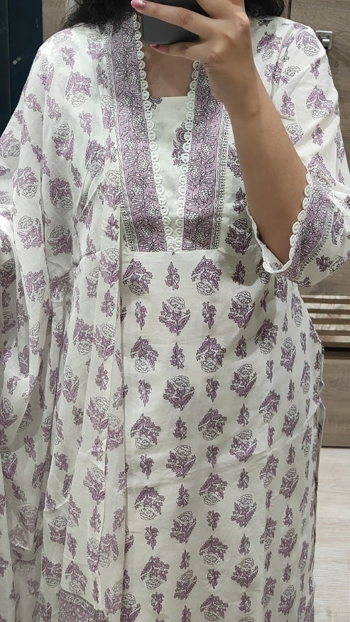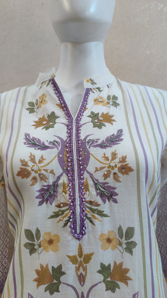 S-38 / Off-white / Cotton L-42 / Off-white / Cotton XL-44 / Off-white / CottonPure Cotton kurti with pant and Dupatta M8870/FL