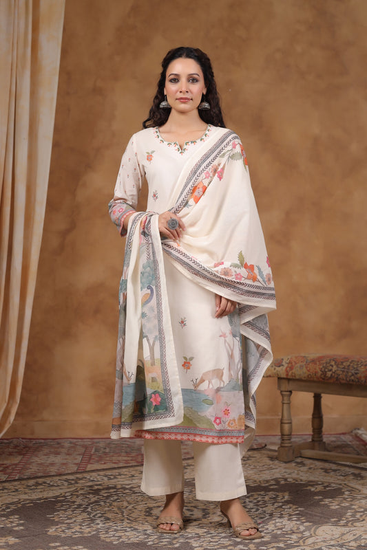 Jamdani Kurti with pant and dupatta M1850/SS
