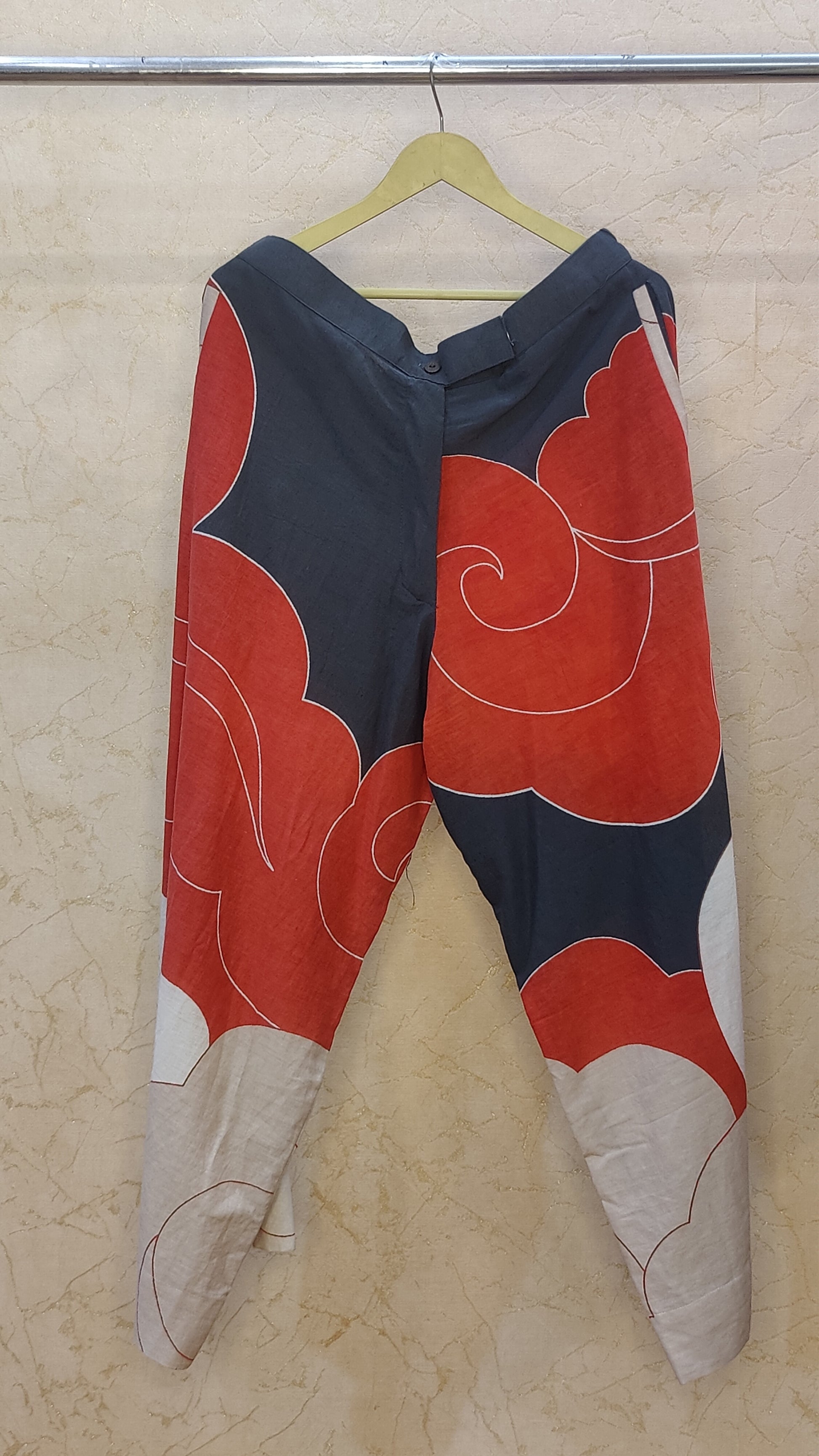 - The pants may have an elastic waistband or a drawstring, depending on the design.