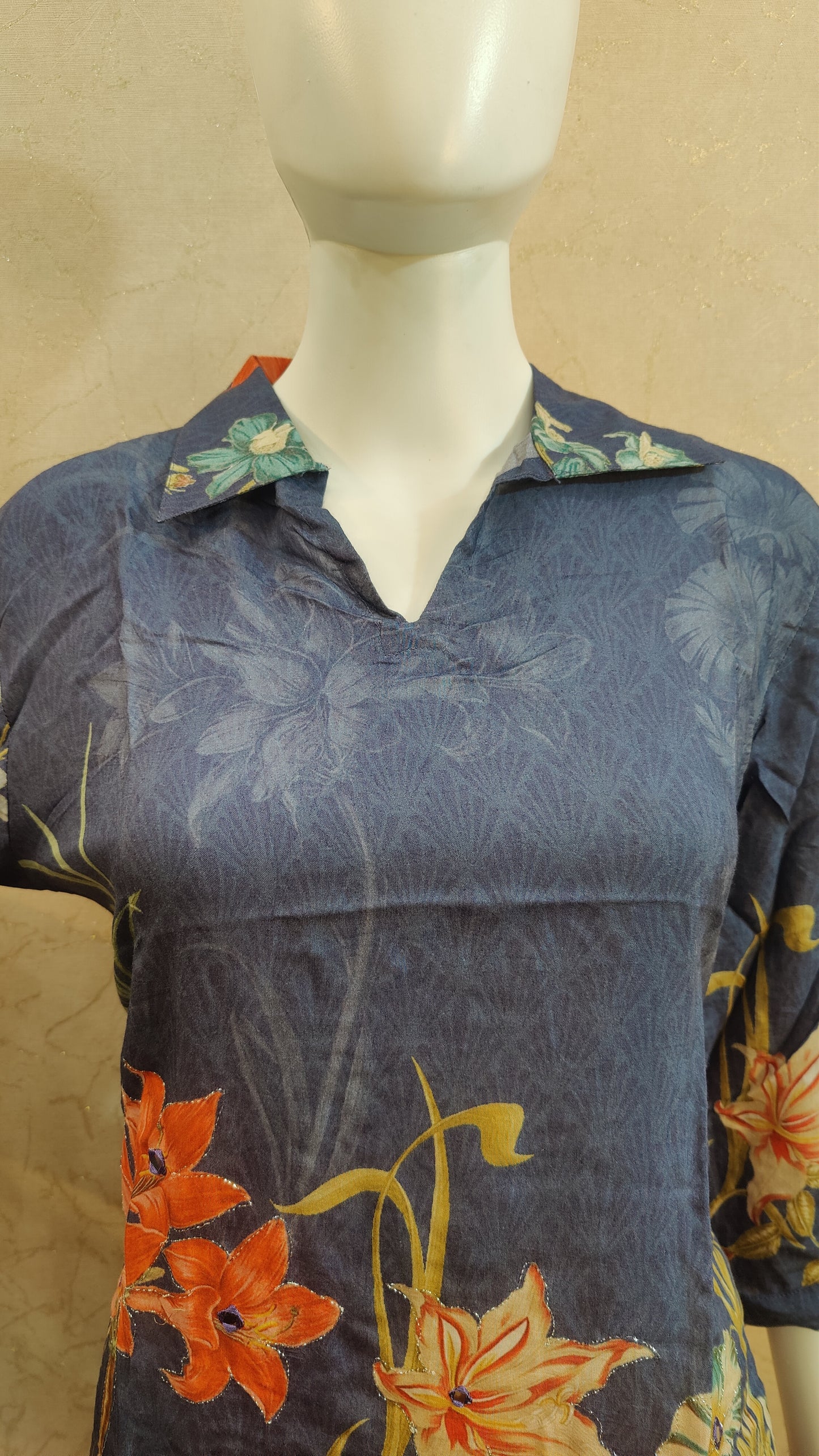 The pure muslin coord set features a charming floral print, combining elegance with a touch of whimsy. This versatile ensemble includes a coordinated top and bottom, exuding a sense of effortless style. The lightweight muslin fabric drapes gracefully, making it perfect for various occasions. With its intricate floral pattern and comfortable fit, this set is a must-have for those who appreciate timeless fashion.
