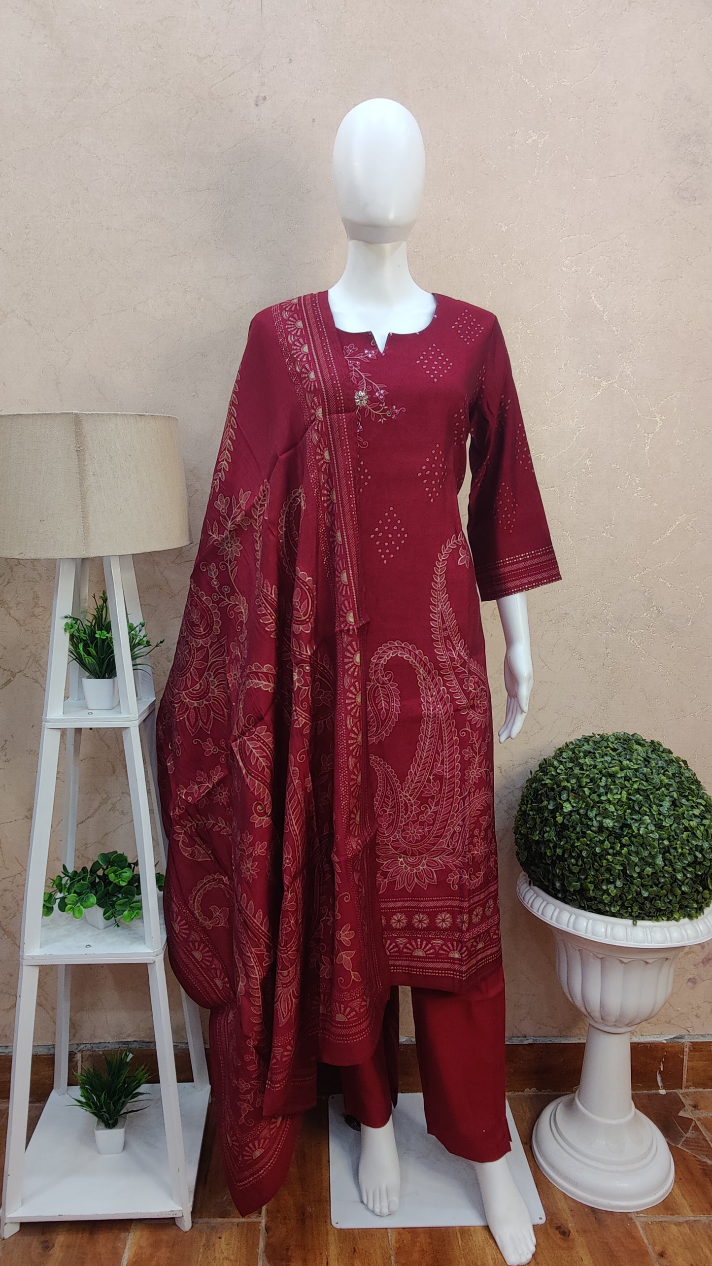 Pure Muslin Kurti with pant and Dupatta M91195GBA