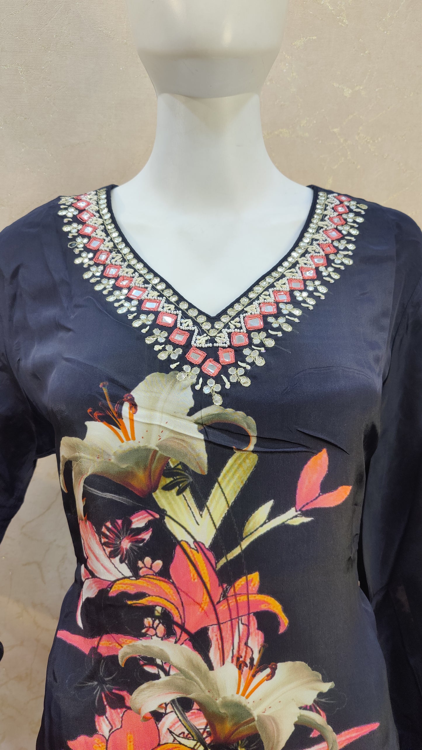 Pure Crape kurti with pant and Dupatta MUSM91250S42