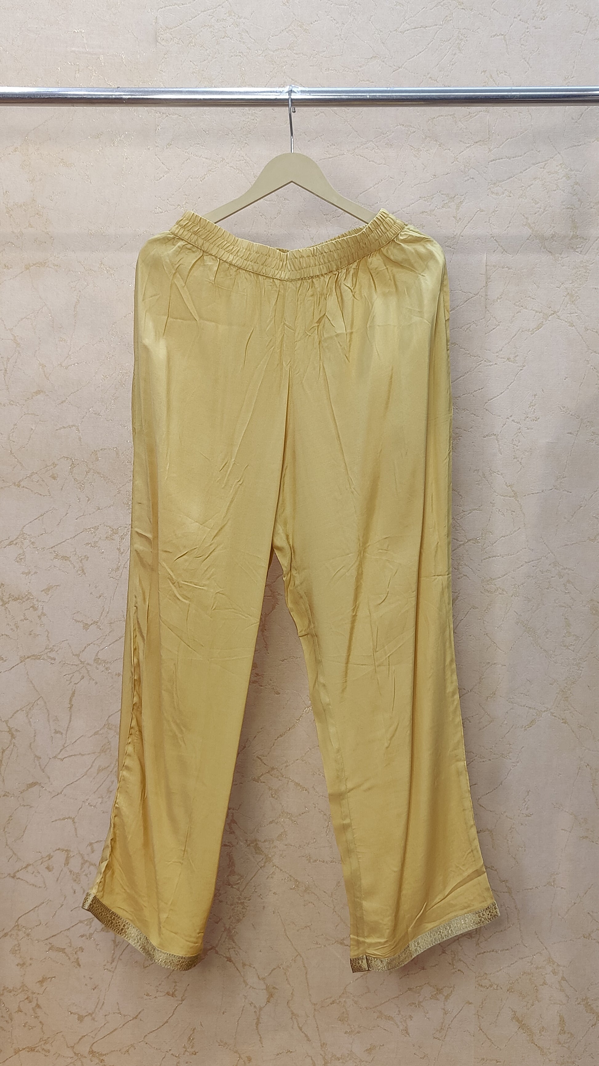 - The pants may have an elastic waistband or a drawstring, depending on the design.