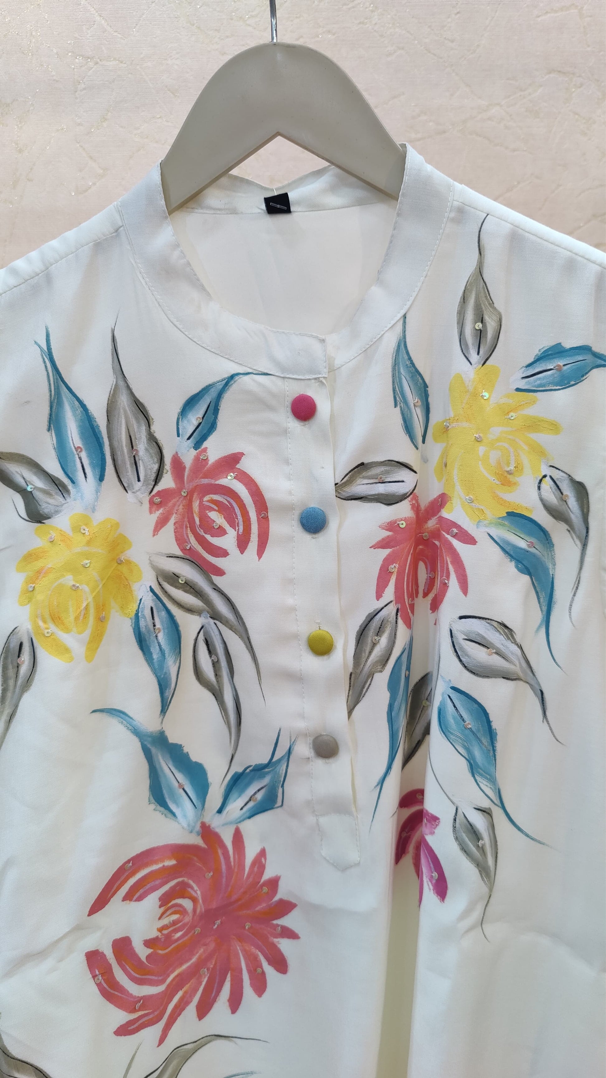 This silk coord set features a timeless floral print, adding a touch of elegance to your wardrobe. Made with high-quality silk, it offers a luxurious feel and is perfect for special occasions or adding a sophisticated touch to your everyday style. Elevate your look with this beautiful, versatile set.