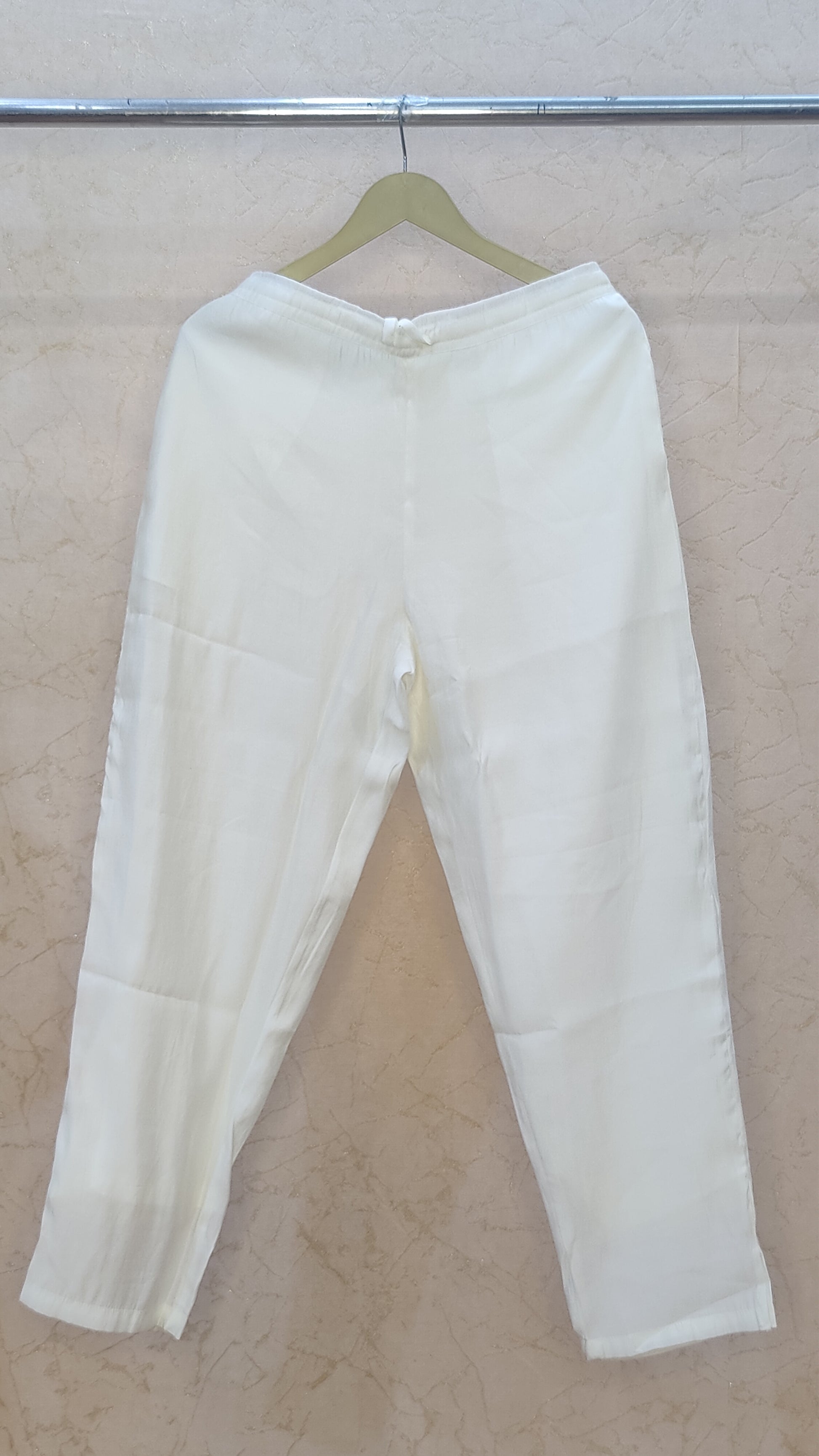 - The pants may have an elastic waistband or a drawstring, depending on the design.