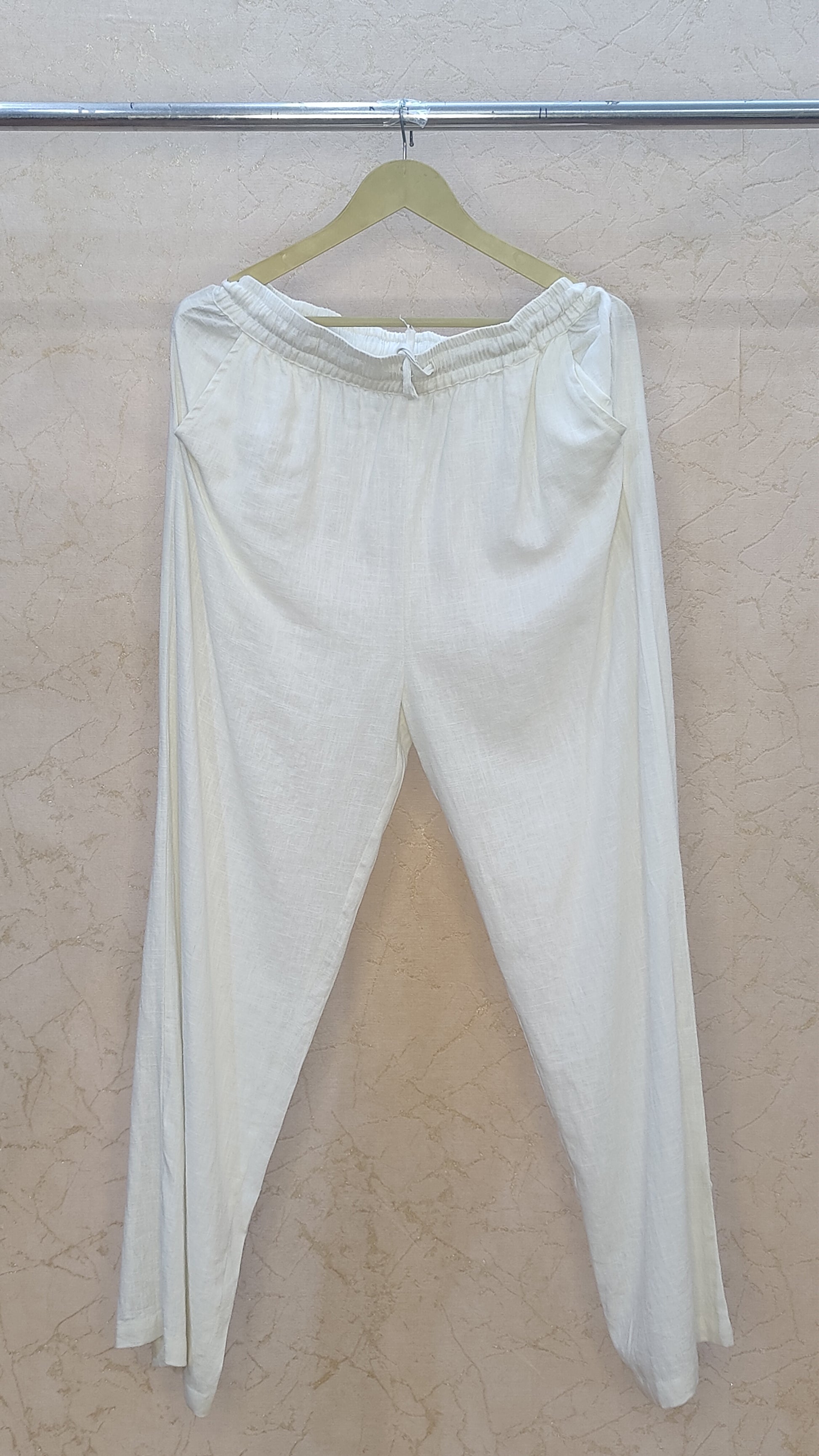 - The pants may have an elastic waistband or a drawstring, depending on the design.
