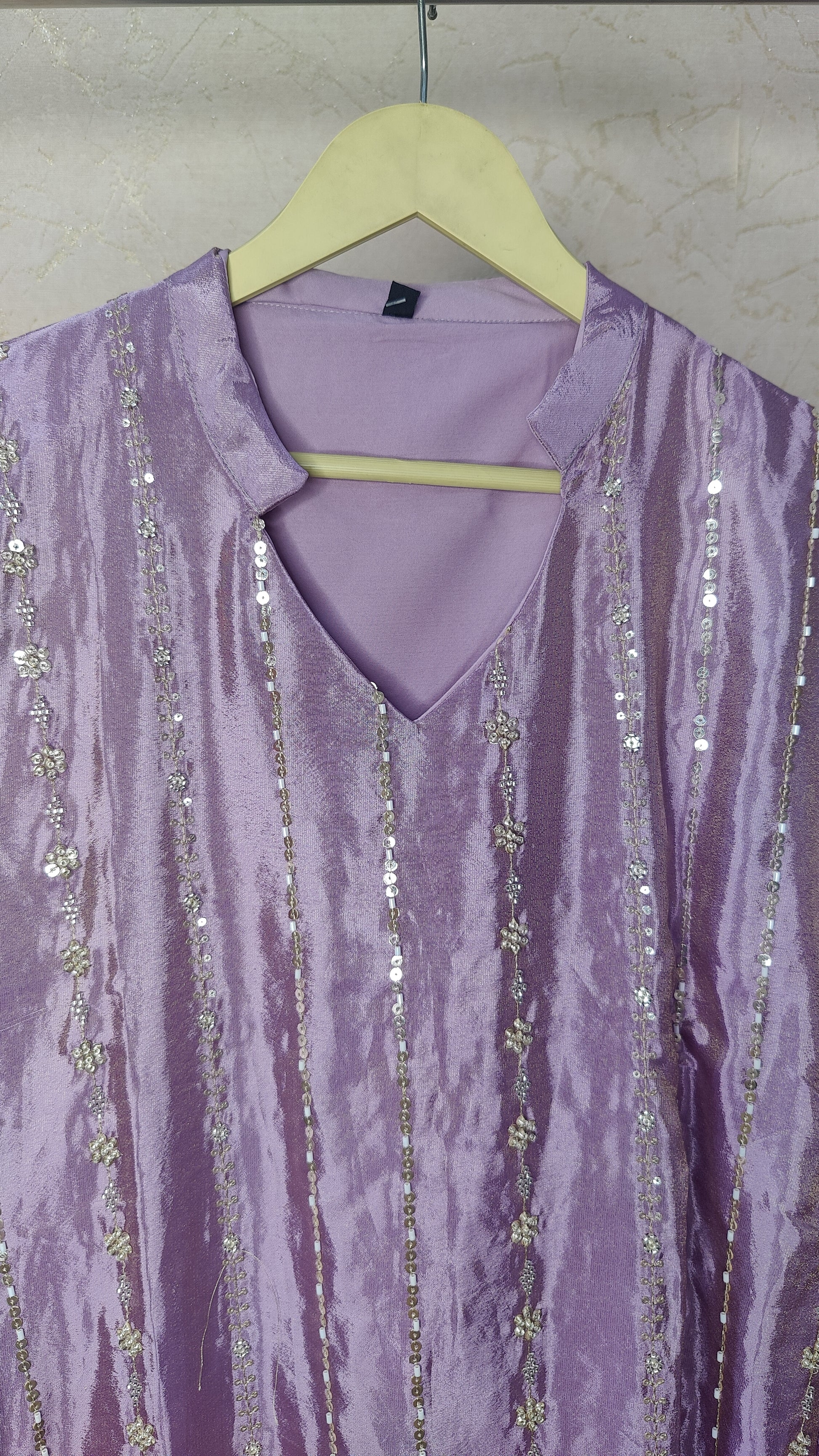 Elevate your wardrobe with our Pure Tissue Silk Co-ord Set. Handcrafted with intricate detailing and a rich purple hue, this set is a perfect blend of luxury and elegance. The perfect addition to your collection, this set is a must-have for any special occasion.